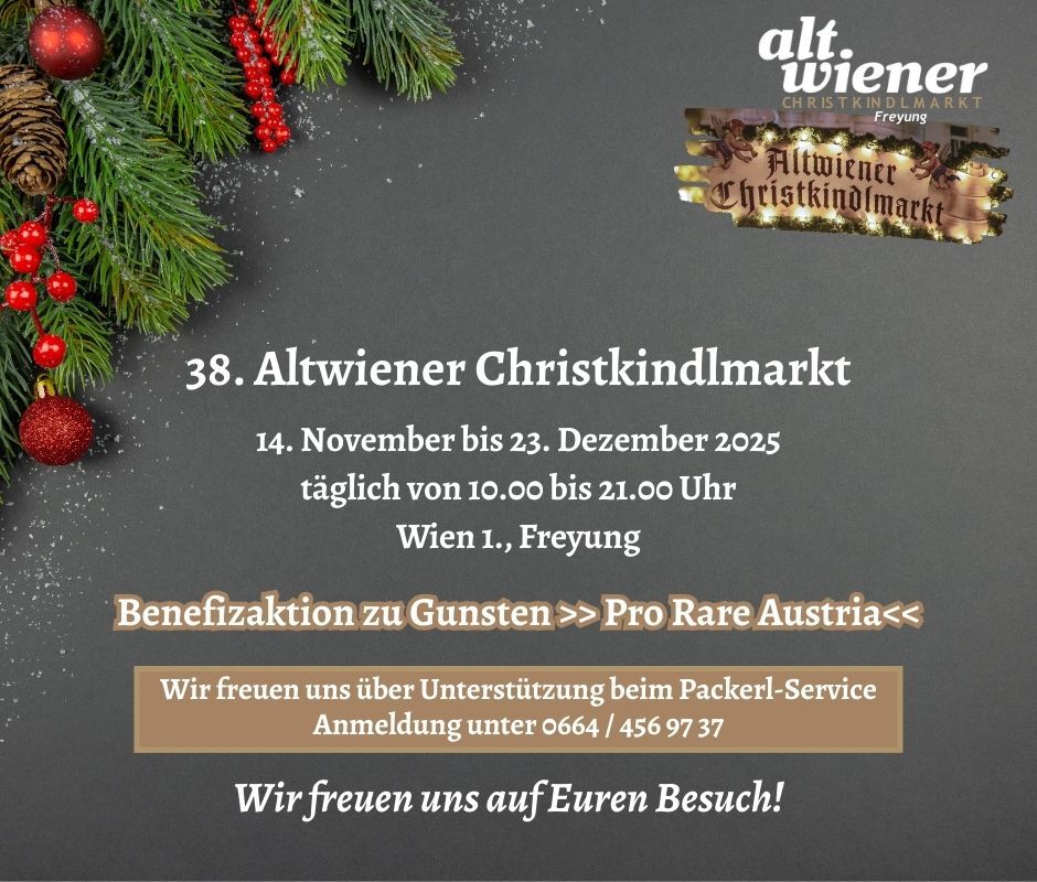 Zum ersten Mal steht 2025 die Benefizaktion des Altwiener Christkindlmarkts auf der Freyung im Zeichen von Pro Rare Austria, dem Dachverband für Menschen mit seltenen Erkrankungen.
